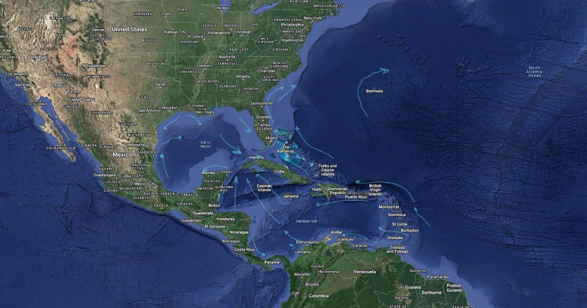 the currents into the north atlantic ocean from the caribbean