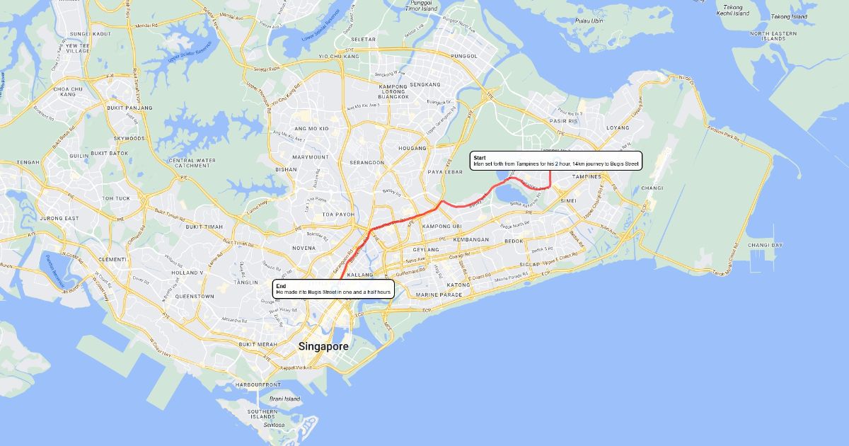 The journey from Tampines to Bugis Street