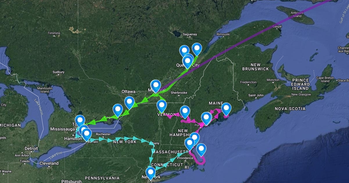 green=hitchhike=704miles blue=bus=760miles pink=car=1190miles violet=plane=4000miles