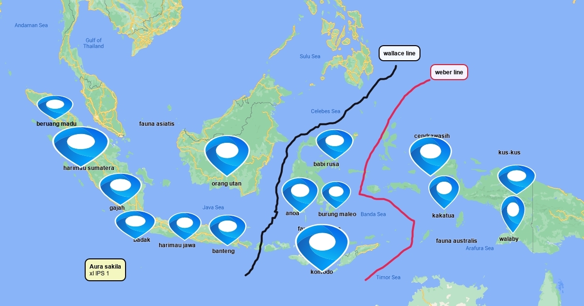 peta pembagian 3 wilayah persebaran fauna