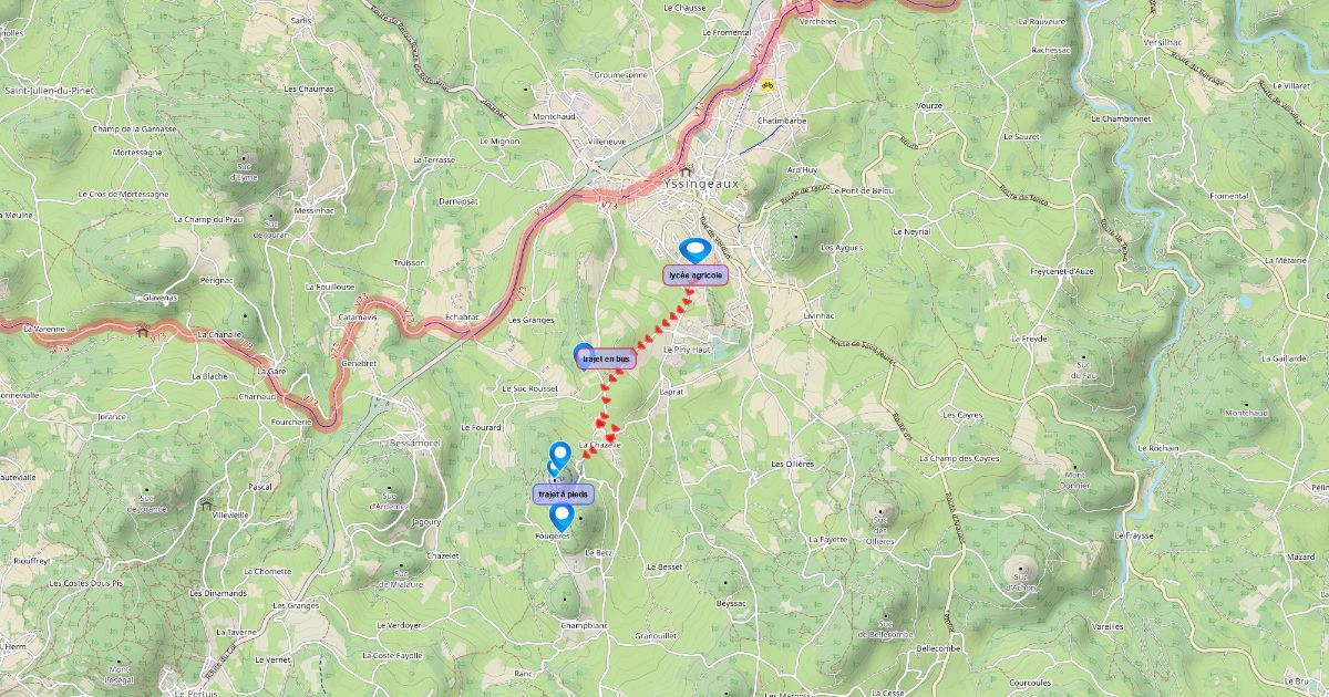 trajet du lycée au suc de saussac