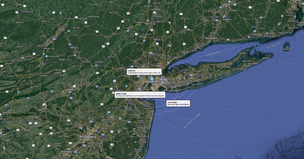 urban fringe,core,suburbs,and rural fringe