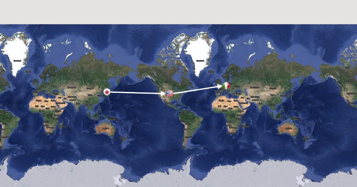 japan to usa to italy