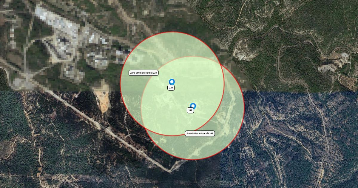 Zone des 500m autour des bât 222 et 223